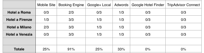Se analizziamo i primi 3 siti web delle strutture ricettive di Roma, Milano, Firenze e Venezia presenti nelle ricerche di google per query “hotel+a+nome località” vedremo che ognuno di questi hotel ha margini di accrescere la propria visibilità, ottenendo maggiori accessi e aspirando a tassi di conversioni più alti.