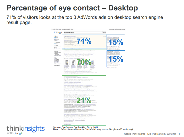 Ora, se usiamo i risultati della ricerca su Eye Tracking e li applichiamo ai due scenari individuati in precedenza, potremmo capire con estrema chiarezza che l’attenzione degli utenti si concentra nella parte superiore dei risultati di ricerca, dove un hotel può comparire attraverso: